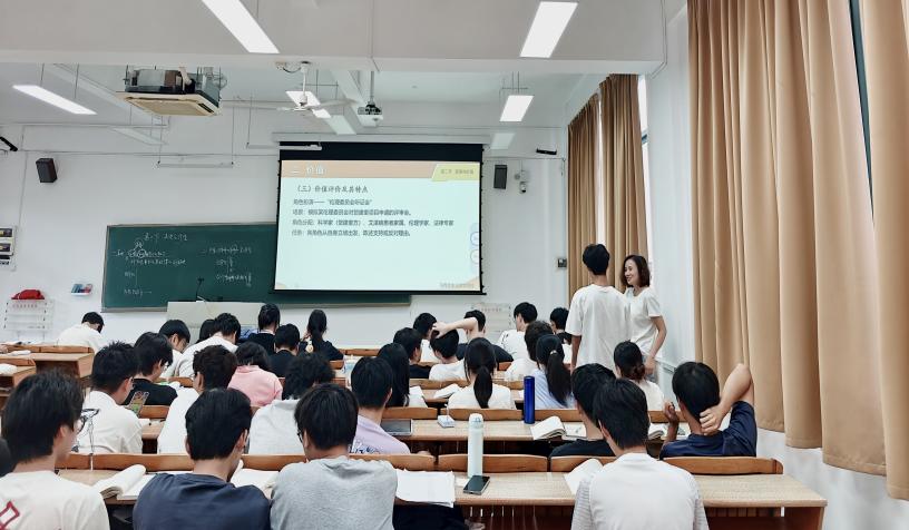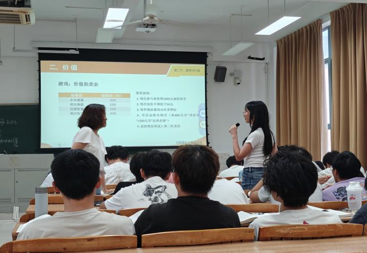 为了帮助学生更好地理解抽象的理论知识,杨丽丽老师精心设计了丰富多样的互动环节。在“学习通”平台上,学生们围绕“基因编辑是否应受限制”这一话题展开了热烈讨论,不同观点激烈交锋,碰撞出智慧的火花。在课堂现场,杨老师组织学生进行分组辩论,辩题“科技进步是否必然带来社会福祉”极具现实意义。在价值论的理解问题上,杨老师组织一场“价值”拍卖会的游戏,学生们各抒己见,展开了一场精彩纷呈的思辨对决。杨老师注重互动过程中的适时引导,使得课堂讨论不断深入,学生们参与热情高涨,充分展现了课程的理论魅力和对现实问题的深切关怀。